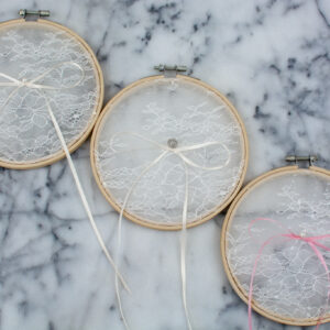 Du wünschst dir eine andere Stofffarbe? Dann schreibe mir hier eine Nachricht und nenne mir dein Wunschprodukt: Ringrahmen Variante 2 – Spitze Flora.